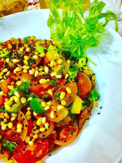 סלטים ולחמים במרכזי השולחן. מתאים לאירועים פרטיים